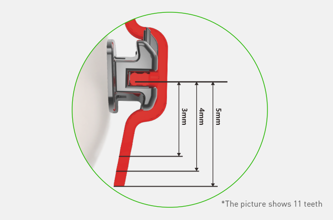 ●Designed with spherical hooks, which increases the comfort. Hooks on the canines of maxillary, no hook design on mandibular.